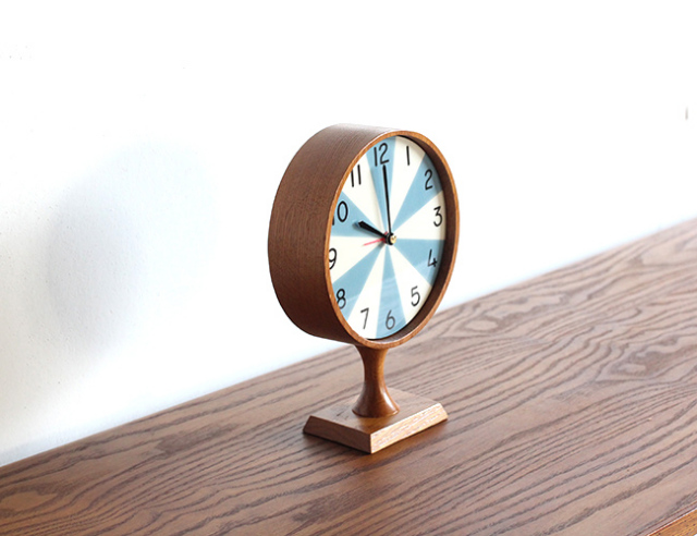 本体を木材で構成し、時計版にはカラーを使い、古きアメリカのイメージを施しています。クラッシック感のある置時計。
