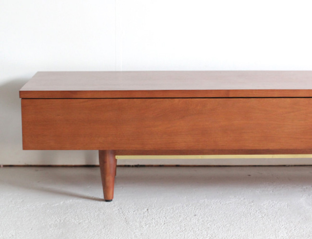 アクメファニチャーから新作入荷。近年の大型テレビに対応したサイジングのテレビボード。シンプルなデザインながら、幕板には真鍮のバーを あしらったりとちょっとした拘りがポイントです。