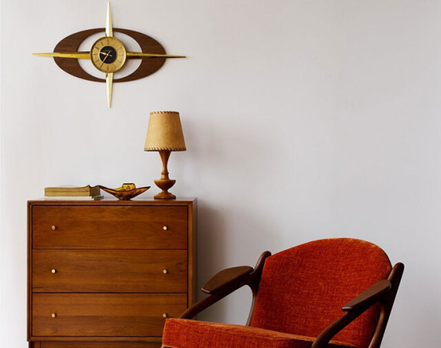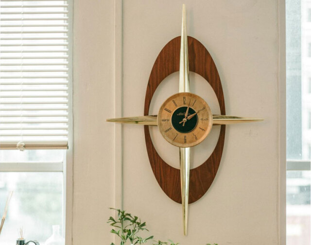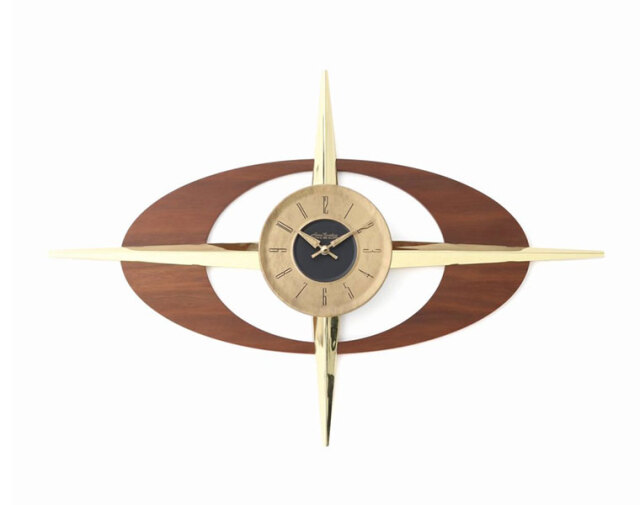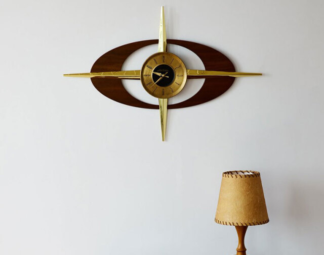 50's~60'sのUSミッドセンチュリー時代のインテリアアイコンの一つ、アトミックシリーズを彷彿させるデザイン。 この時代のランプはとても個性的で、どれをとっても圧倒されるほどの存在感を放っていました。 壁にアートやフレームを飾るのはハードルが高い…というお部屋でも、壁掛け時計は必需品。 たった一つでお部屋の雰囲気をがらりと変えることができるデザインです。