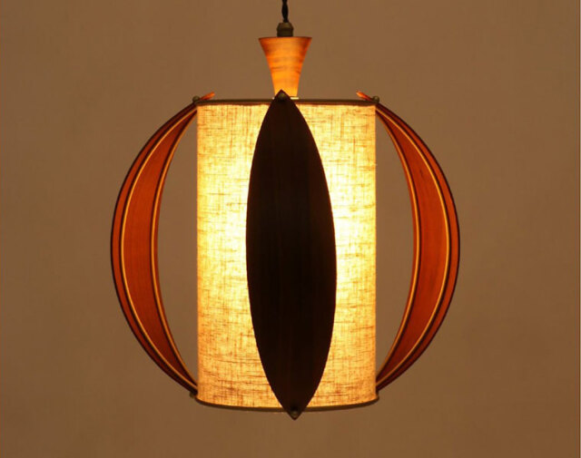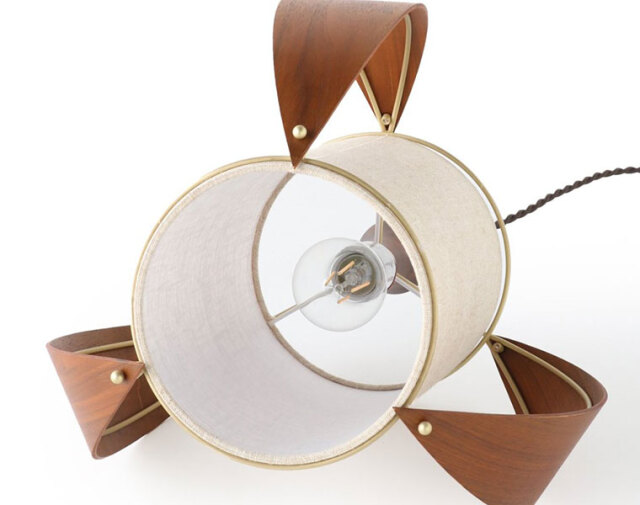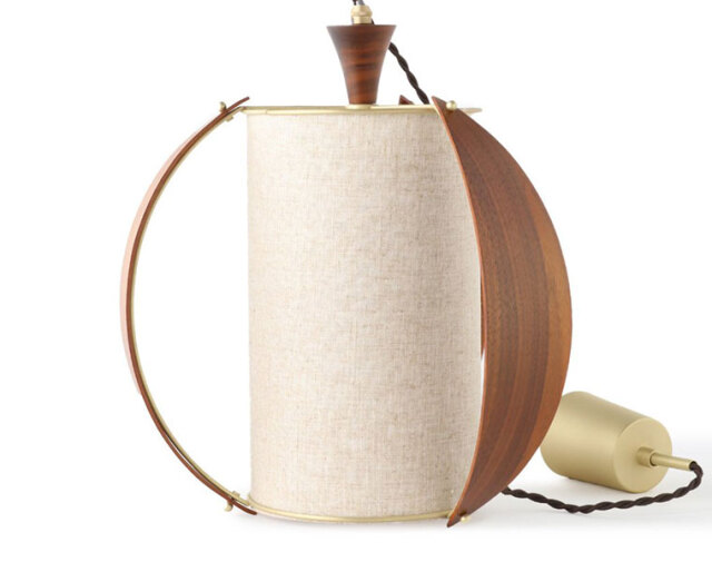 カーブした3枚のウッドリーフが特徴的なACME Furnitueオリジナルペンダントランプ。