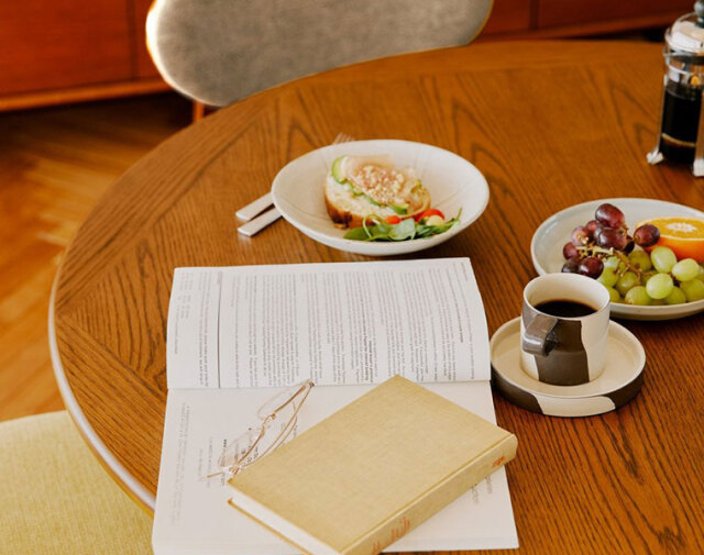 くつろぎと食事のバランスを取ることができるよう座面と背もたれの角度を調整しています。