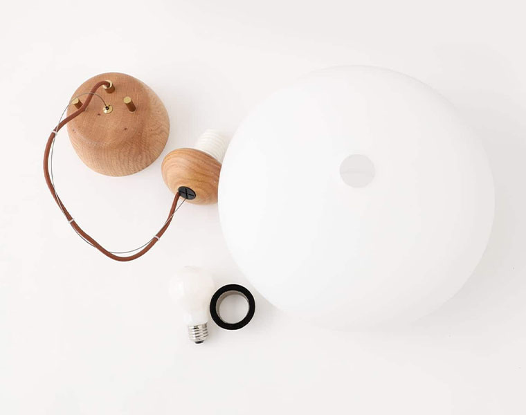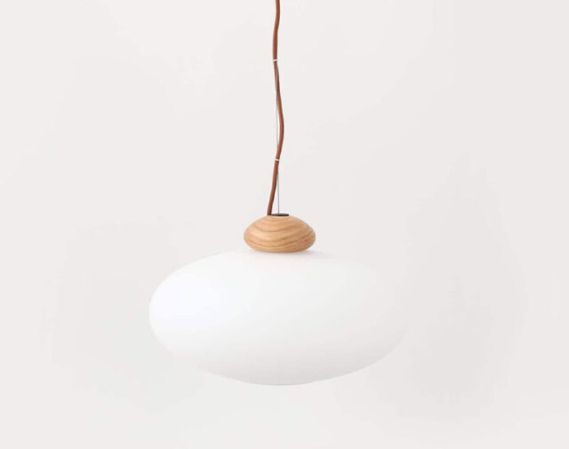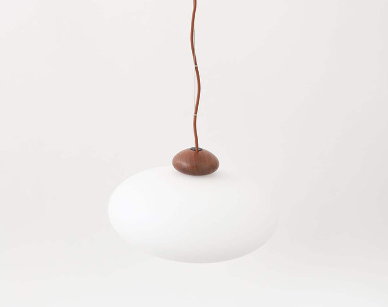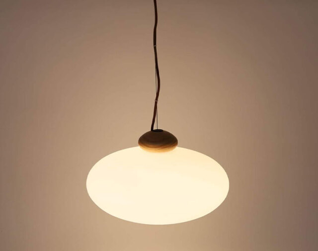 家具にも使われるオーク無垢材 OR ウォルナット無垢材を削り出して仕上げた部材を使用したペンダントランプ。