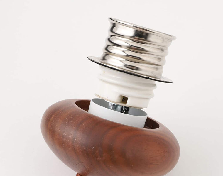 また、天井配線器具との接続部を覆うフランジカップも、同じオーク無垢材 OR ウォルナット無垢材から削り出して製作しています。
