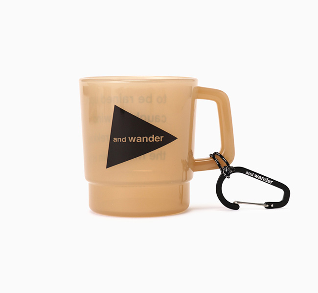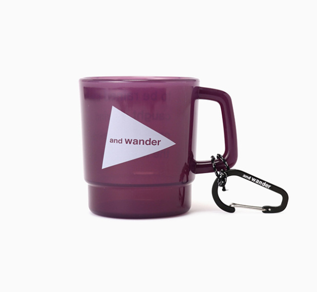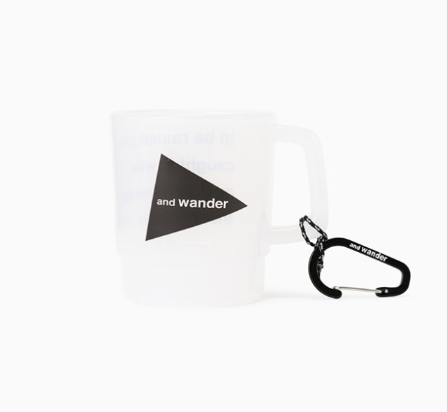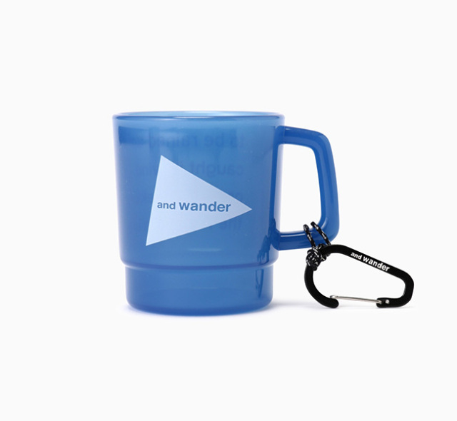 and wanderのロゴがプリントされたポリプロピレン製BPAフリーの軽量なマグカップ。
