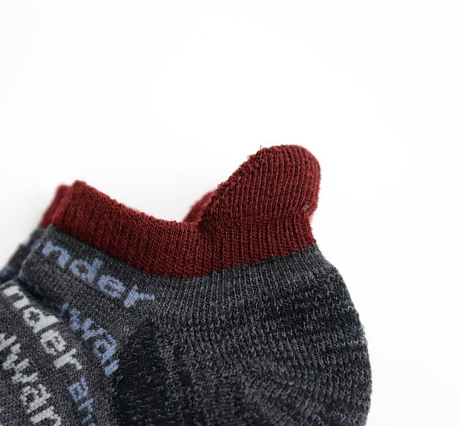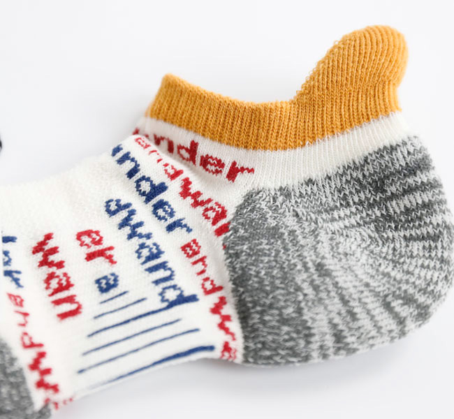 つま先、かかとなど部分的にパイル編みにすることでクッション性を高めて機能的に仕上げています。