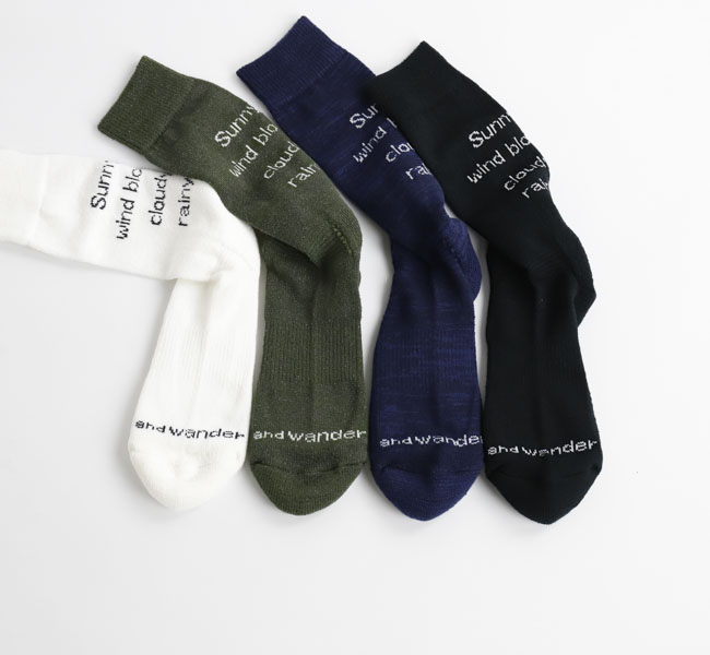 「山や自然の中でも街と同じようにファッションを楽しみたい」と考えた2人のデザイナー、池内啓太と森美穂子によって2011年に設立され、感性を刺激するモード感とアウトドアウェアとしての実践的な機能性を追求したものづくりを展開。 そのプロダクトは自分たちが実際に山を歩いて感じた楽しさに基づき、風雨から身を守る丈夫で軽量な素材使い、山々に調和し街では新鮮な印象を与えるカラーリングなどを特徴とし、国内外でのフィールドテストに裏づけされた快適なカッティングや実用的なディテールがデザインされている。 「山で遊ぶ楽しさ」はand wander設立時からの一貫した理念であり、毎シーズンのコレクションの制作をはじめ、ユーザー参加型のハイキングクラブの運営などさまざまな形で活動している。