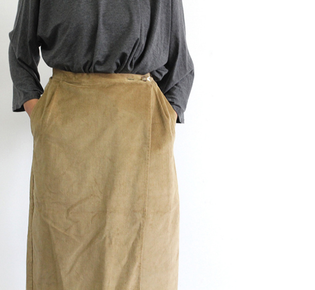 EEL より新しく始まったレディースブランド、ironari/イロナリ。コーデュロイの厚めの生地がかわいらしいスカートです。タイトなデザインですが、スリットがはいっているので動きやすいです。ウエスト部分のボタンでサイズ調節ができます。
