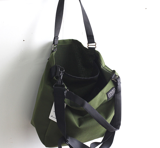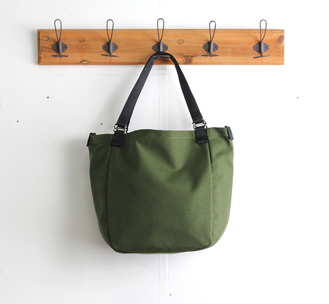 表地 に 1000デニールのUSAコーデュラナイロンを使用したトート。ハンドルには25mm幅のチューブ状ナイロンを使用。インナーにウレタンを装備しているので、柔らかな握り心地です。