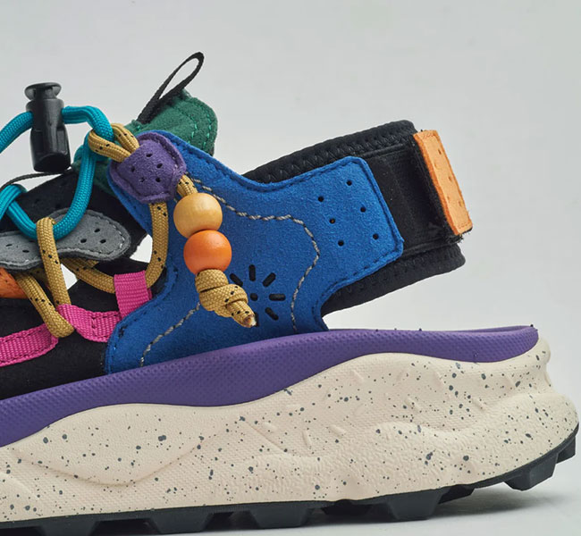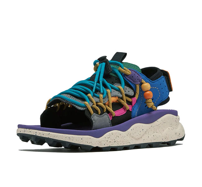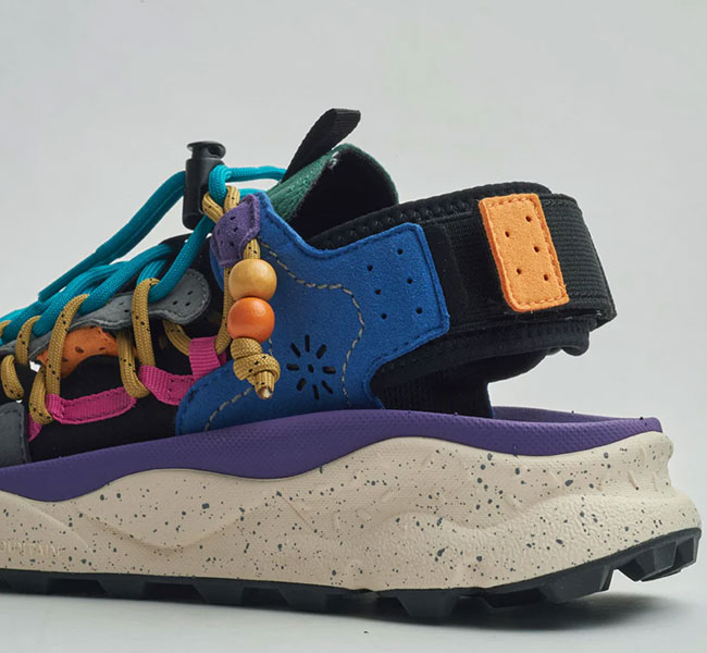 フラワーマウンテンらしい有機的な曲線美とパーツ構成、複雑に重なり合うディティール。そして、ヴィンテージ感漂うビーズをあしらったレースエンド…唯一無二の風格を纏うサンダル "PUMA PUNKU"