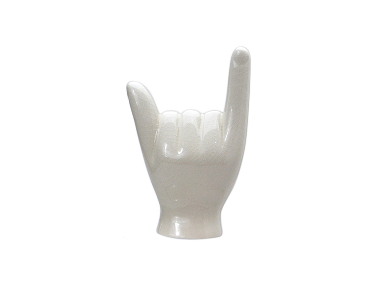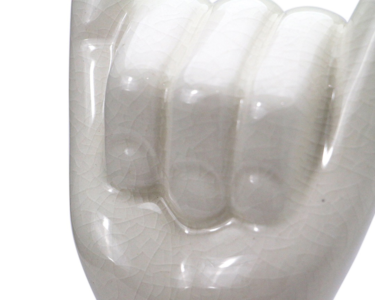 70年代によく見かけた木製ハンドオブジェを貫入入りの陶器にて製作。