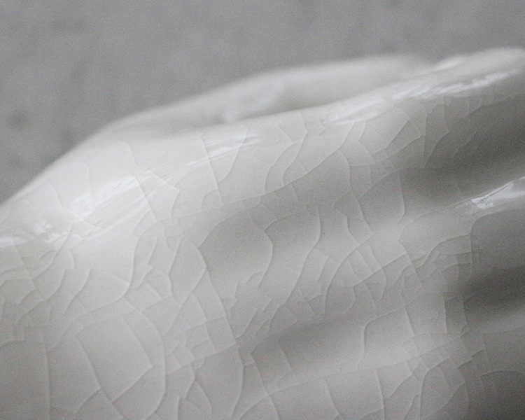 70年代によく見かけた木製ハンドオブジェを貫入入りの陶器にて製作。