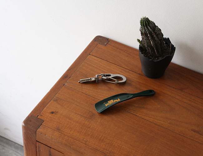 靴べらというモチーフにおいて、木材や金属などさまざまな素材が使われているものの、デザインで差別化されたものは実は少ないアイテム。生産は、80年間にわたってmade in USAを守り続け、様々な企業のアドバタイジング(広告)用のシューホーンを提供しているカリフォルニアの老舗メーカーの別注タイプです。「ちょうどいい」バランスがコンセプトであるANAheimのアイテムとして、海外の日用品のような雰囲気をまとったプロダクトは雑貨好きの心をくすぐります。
