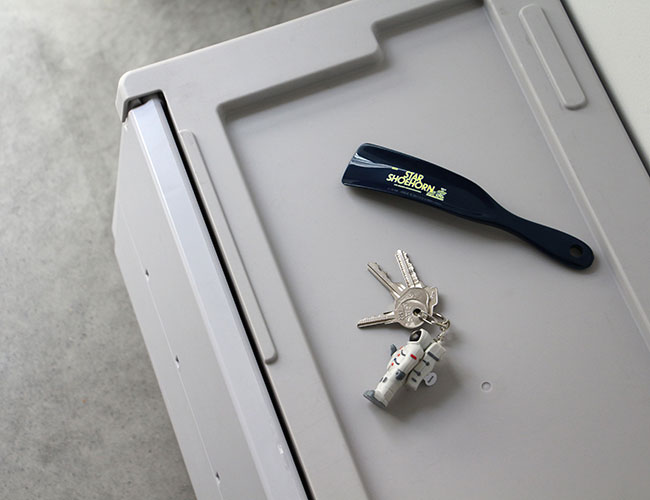 コンパクトなサイズに加え、ハンドル部分にはホール(穴)付き。玄関の棚の上や靴箱の中に収納するのはもちろん、扉につけたフックに掛けられるのも意外と便利なポイント。軽量かつ高品質なので出張や旅先先にも持っていきたいプロダクトです。