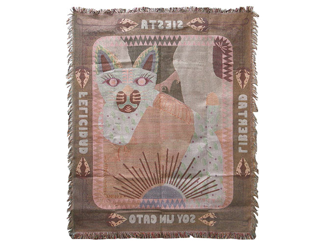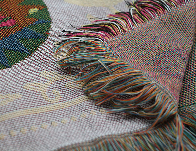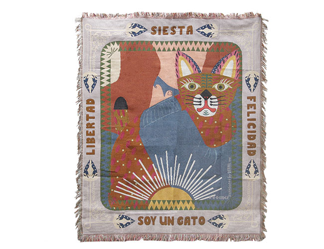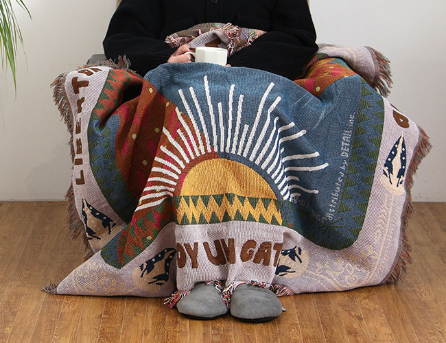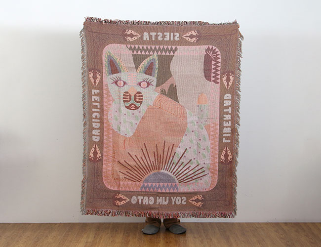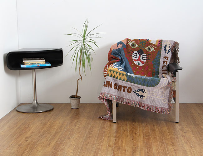 「スロー(throw)」と「ブランケット(blanket)」を組み合わせた造語。防寒やリラックスのための機能性と、部屋の雰囲気を高めるインテリア性を兼ね備えた、多機能でデザイン性の高い小ぶりなブランケットを指します。 そんなスローケットをキャンバスにして、メキシコ・オアハカ州(Oaxaca)でみられる独特の色彩と造形が特徴の木彫り民芸品”ウッドカービング”をモチーフにデザインに落とし込んであります。