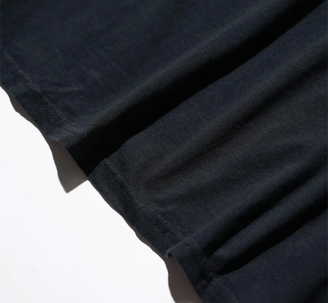 生地を傷めない加工なので新品でUSED感を楽しめます。洗いの工程で通常の洗いより15%水の量が少なく済む利点もあり環境も考慮している加工です。