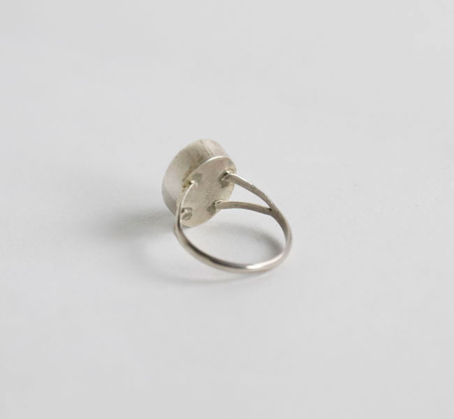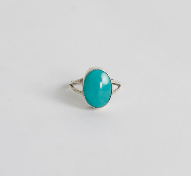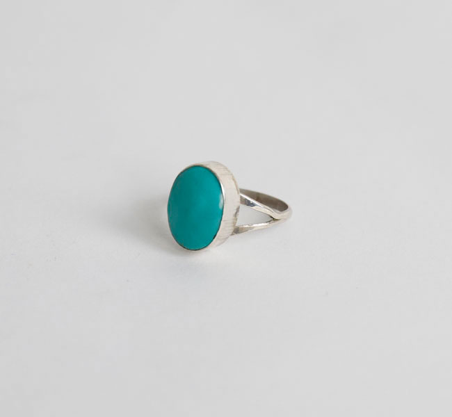 中央には、鮮やかなブルーが美しいターコイズがセットされたターコイズのリング。