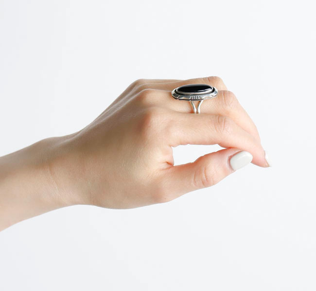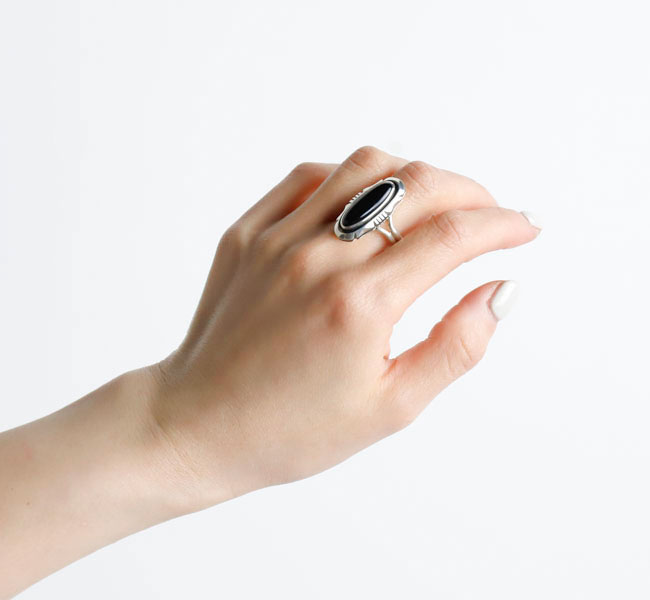 中央には、大きめのオニキスがセットされたリング。
