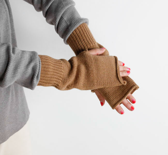 アクリルにアルパカとメリノウールを混紡したリーズナブルなハンドウォーマーです。