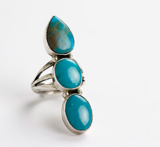 ナバホ族 Patrick Yazzie/パトリックヤジーのリングです。 ターコイズを3つ贅沢にあしらったインディアンジュエリー・リングです。
