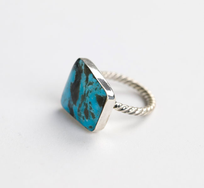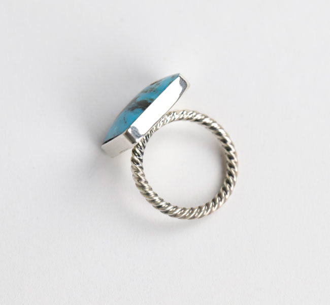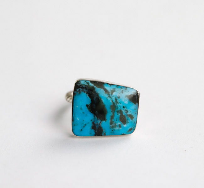 ナバホ族のリングです。 シンメトリーのターコイズスクエアは目を引き、コーディネートのポイントとなってくれます。