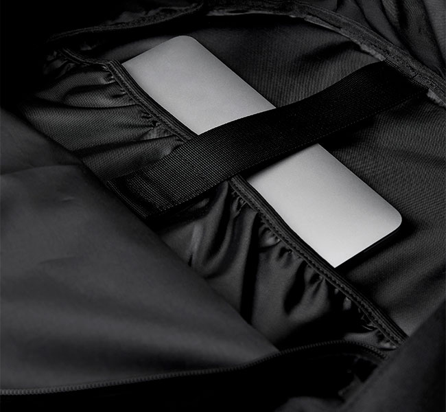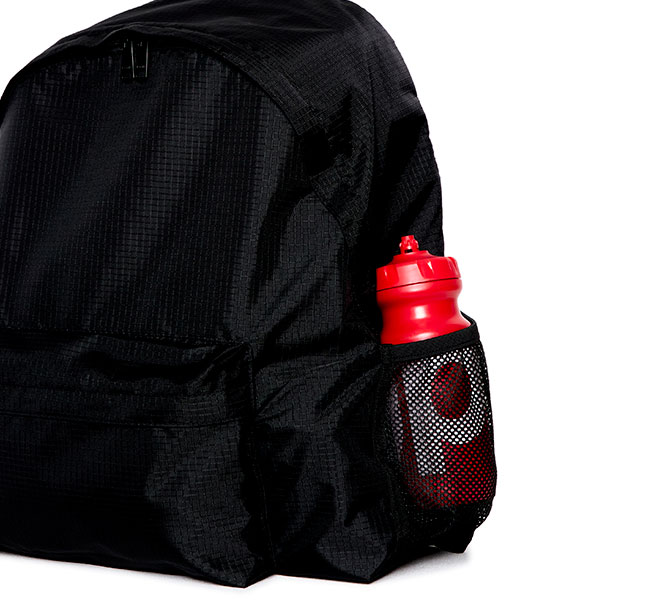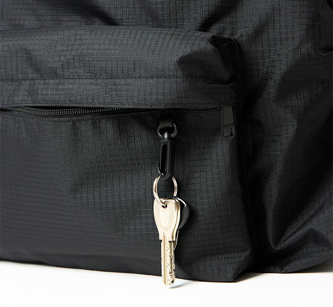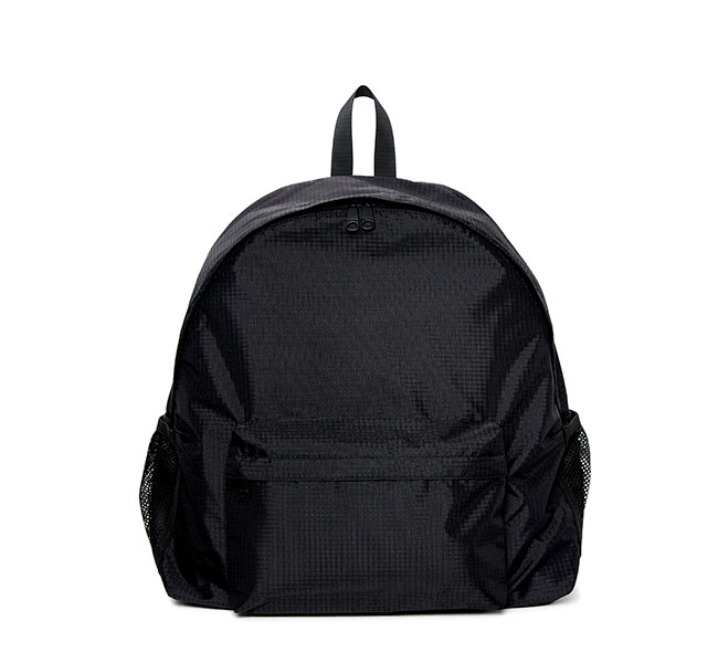 軽量なリップストップナイロン素材のバックパック。 キャリーケースのキャリーバーに装着可能なので、旅行時にも重宝します。