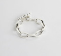 T-BAR BRACELET”925 Silver。 ボリュームの良い35mm幅のT-BARとチェーンが組み合わせられたブレスレット。 しっかりとした重厚感がありながらも、シルバーの上品さを感じられるデザイン。 単体でも存在感がありますが、他のアクセサリーとの重ね付けもおすすめです。 留め具のTバーがアクセントとなり、手元に存在感を与えます。