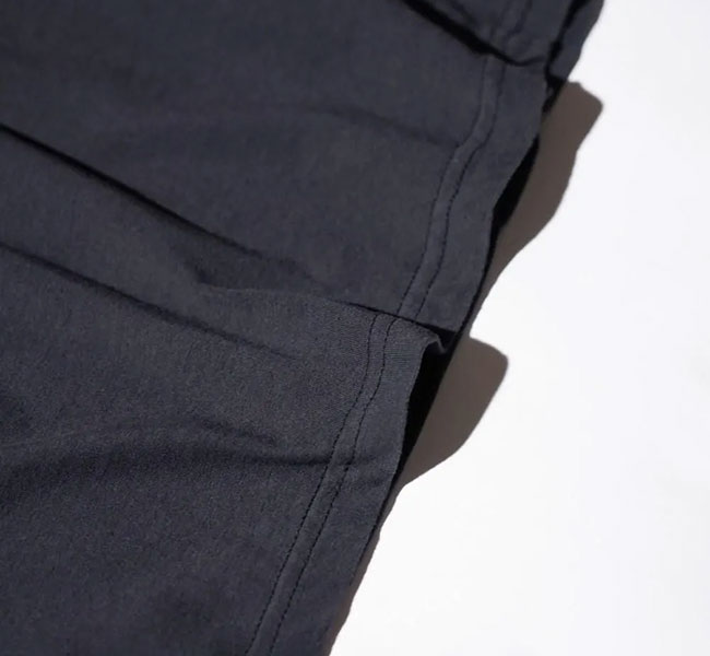生地を傷めない加工なので新品でUSED感を楽しめます。洗いの工程で通常の洗いより15%水の量が少なく済む利点もあり環境も考慮している加工です。