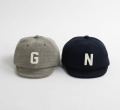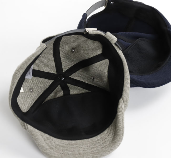 肉厚な素材ですがつば芯の中にも綿素材を使用していますので家庭洗濯が可能です。フロントの文字はカラー名の1文字を抜き取り2mm厚のグレー杢フェルトでマーキング。