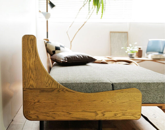 直訳すると、住処という意味を持つ【HABITAT SOFA BED/ハビタソファベット】 journal standard Furnitureから【座る】【寝る】【くつろぐ】の3通りを実現するSOFA BEDの提案です。 一人でも簡単に座面を伸び縮みさせる事が可能。 従来のSOFA BEDに比べると重量も軽く出来ている為、移動も楽々。 普段使いは座面を伸ばした状態で「座敷」のような感覚で足を伸ばしてゴロゴロ過ごしたり。子供と一緒に本を読んだり、カードゲームをして遊んだり。 急な来客時には座面を縮めて普通のSOFAとして使用したりと、 様々な場面に万能に対応する事が出来ます。 SOFA BEDと言うと一人暮らしの方向け。 凹んだ所に体がはまって朝起きると体が痛い。寝心地が悪い。 という印象を抱いてしまう方も多いのでは? HABITAT SOFA BEDは本物のマットレスを使用している為 メインのベットとして使う事はもちろんの事、 急な来客の簡易ベットとしても自信を持ってお客様に勧められるクオリティ。 座面のクッションはライトウェーブのシングルサイズをそのまま採用。 通常のウレタンの中材と比べて通気性が良い為、「蒸れない」「乾きやすい」と言うメリットも。 座面の手前(端)は型崩れがしないようにセンターと比べるとライトウェーブの密度が濃くなっています。 また、ファスナーを開けて取り出して水洗いが可能です。 カバーも取り外し対応のため、いつまでも清潔に保つことができます。