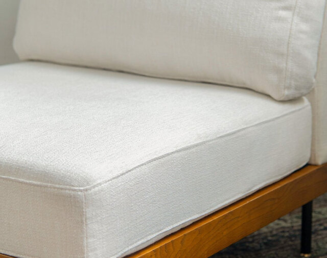 | 素材 | 木部:アッシュ 脚部:スチール、真鍮 カバー:ポリエステル 中材:ウレタンフォーム、シリコンフィル 【カバー】取り外し可、ドライクリーニング推奨。 |