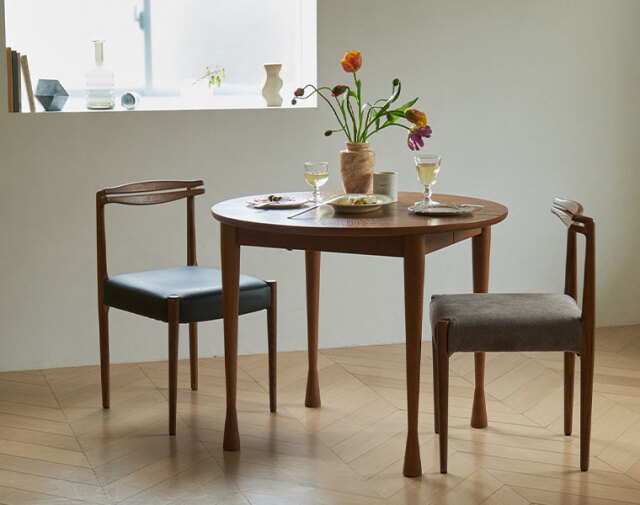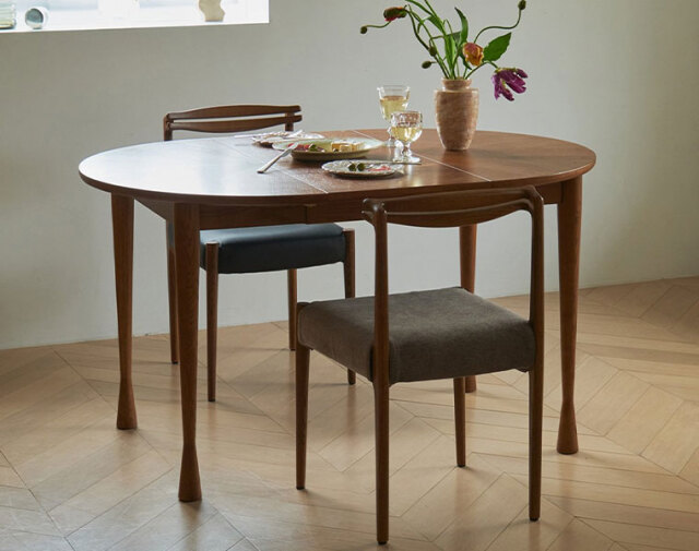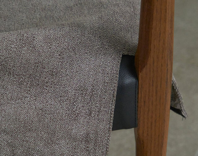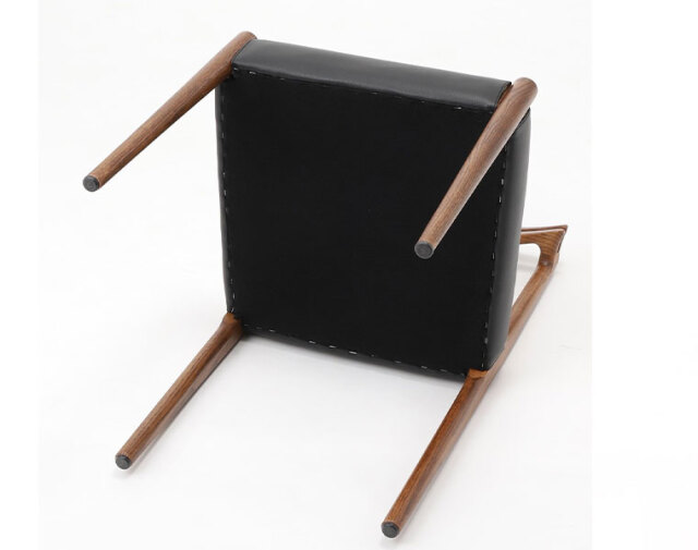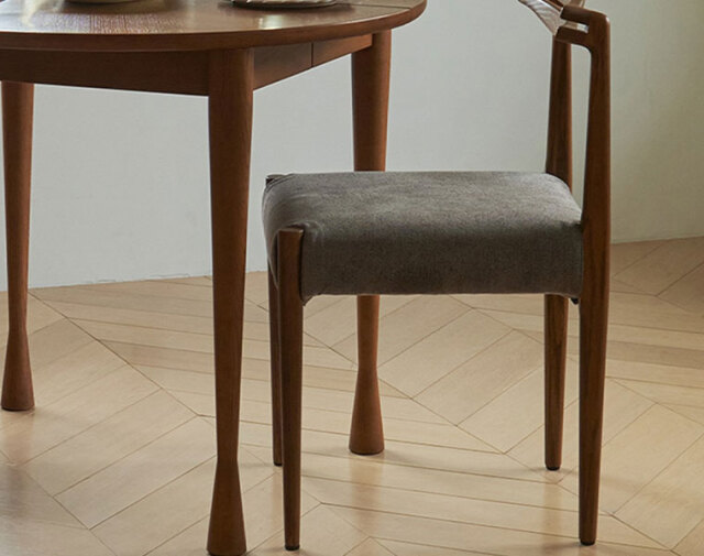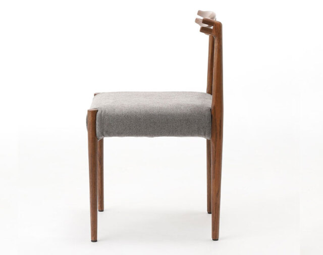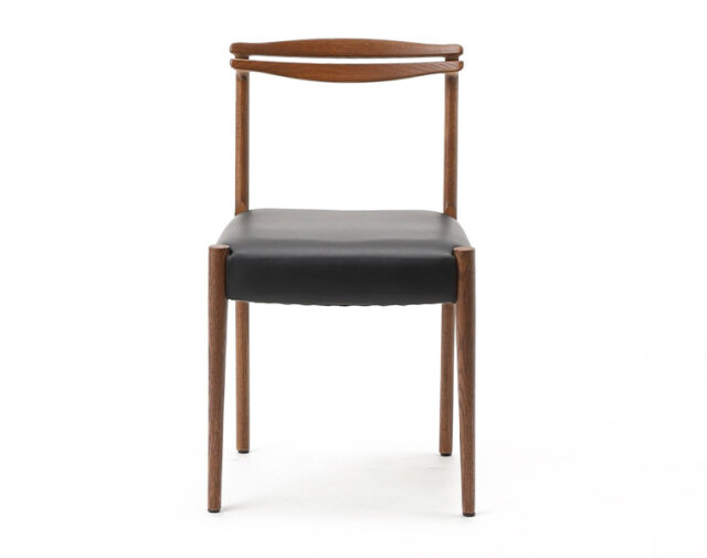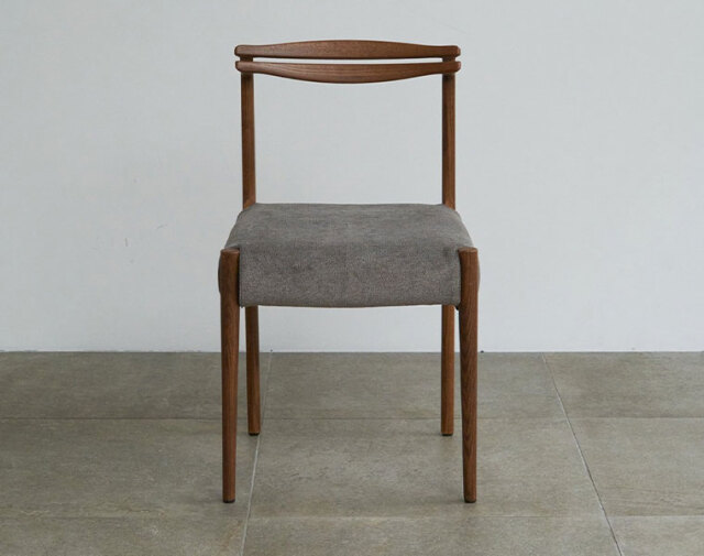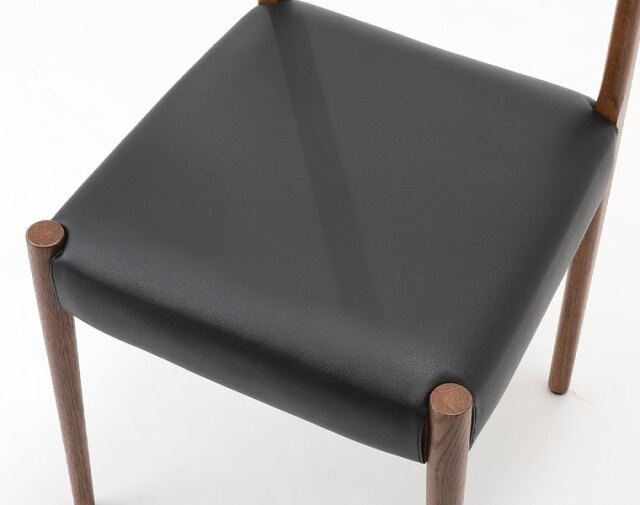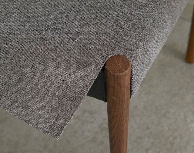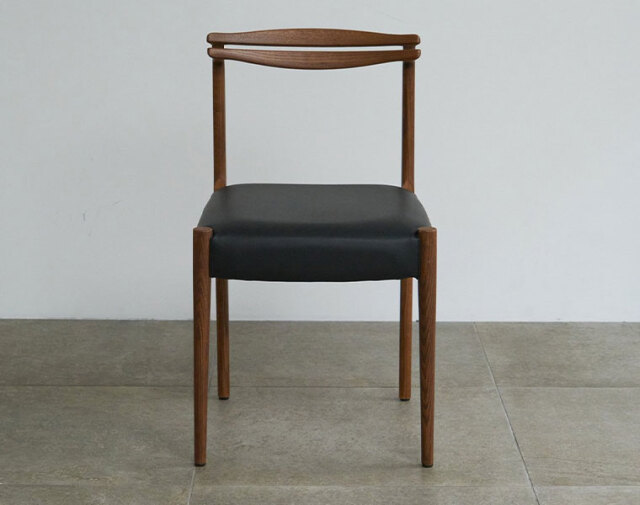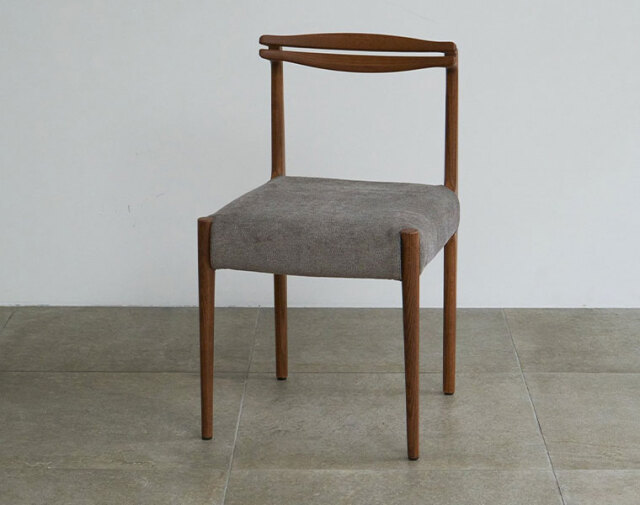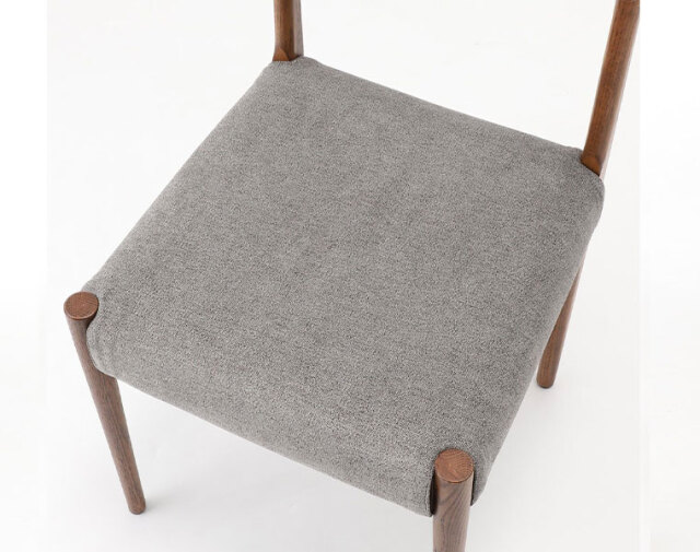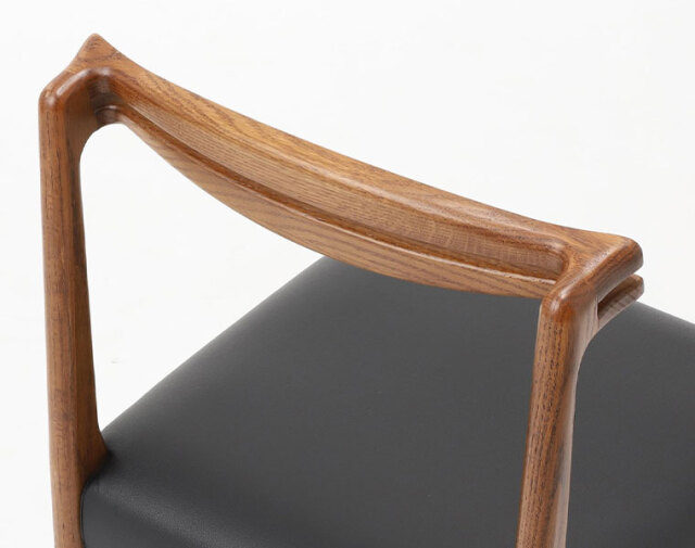 後ろ脚から背もたれへの無垢材の接合が美しいチェア。