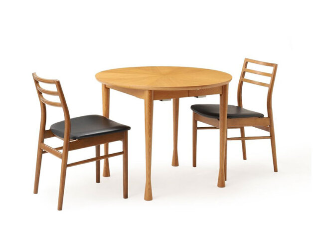 同シリーズのAROS ROUND TABLEを広げた際には、長手方向の脚の間に2脚がぴったり収まります。