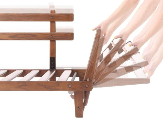 通常のソファベッドはワイド寸法はそのままで奥行きが広がるものが多いですが、 このソファは通常使用の場合W:157cmとコンパクトなのが特徴。