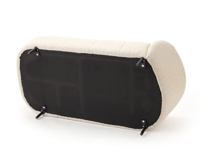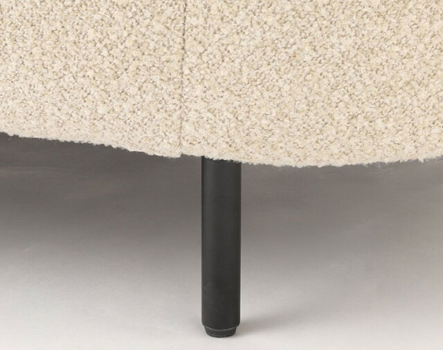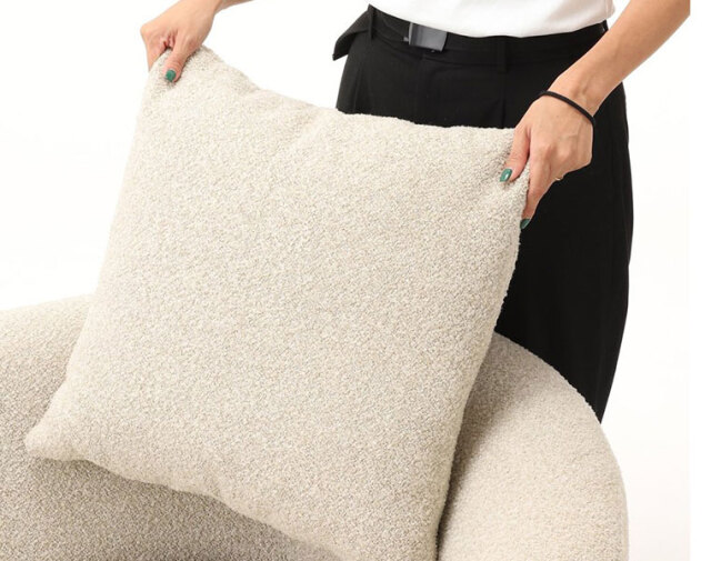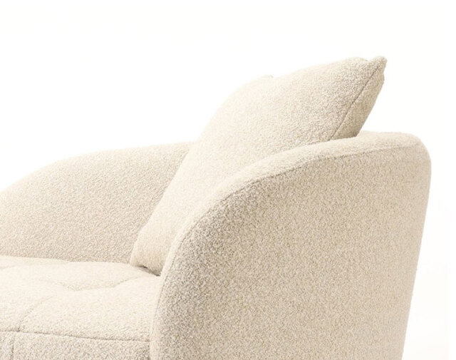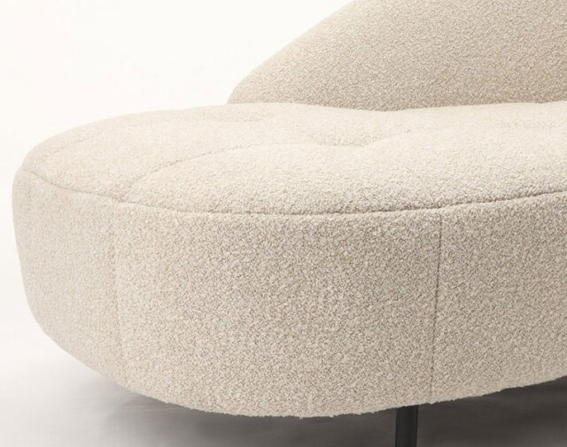 ベージュのブークレ素材の張地が、上品でありながらも軽やかな印象を与え、インテリア全体を落ち着いた雰囲気にまとめてくれます。