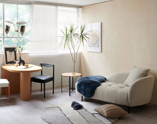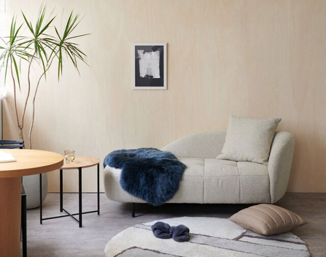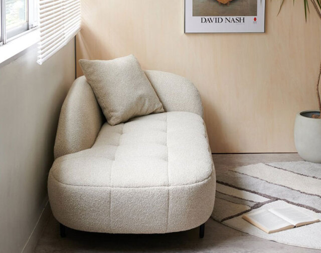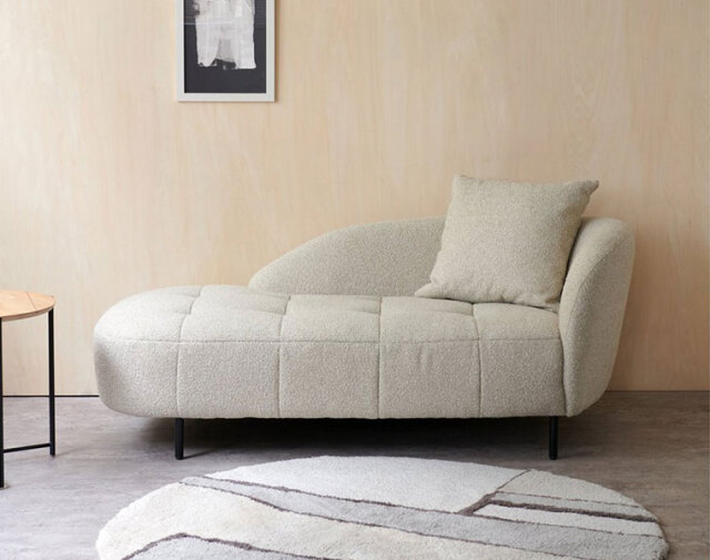 コンパクトながら好きな姿勢でリラックスできる、2人掛けのシェーズロングソファ。