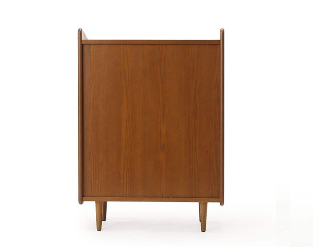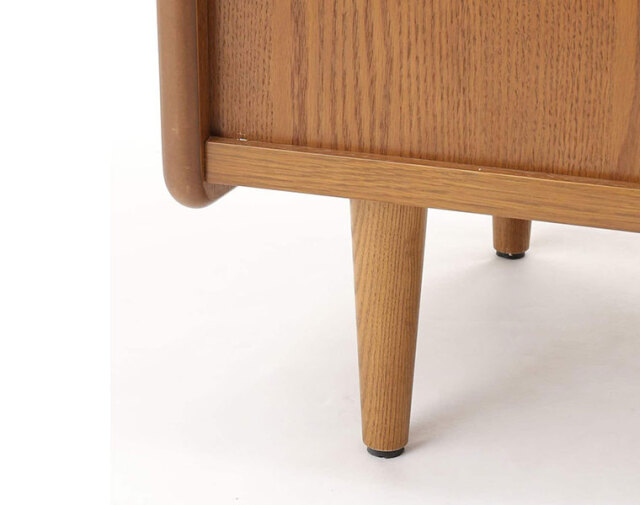 北欧デンマークヴィンテージを意識したデザインで、 側板の木口をAROSスライドシェルフと同様にすることで、シリーズとしての一体感を出しています。