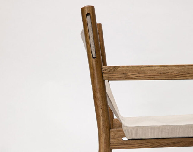 ヴィンテージのサファリチェアからインスパイアを受けてデザインしたダイニングチェア。