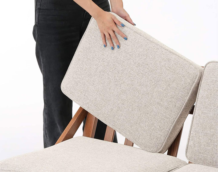 無駄のないすっきりとしたフレームにクッションを組み合わせることで、軽やかで抜け感のある佇まいを実現。