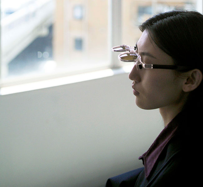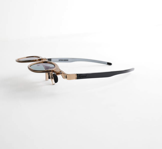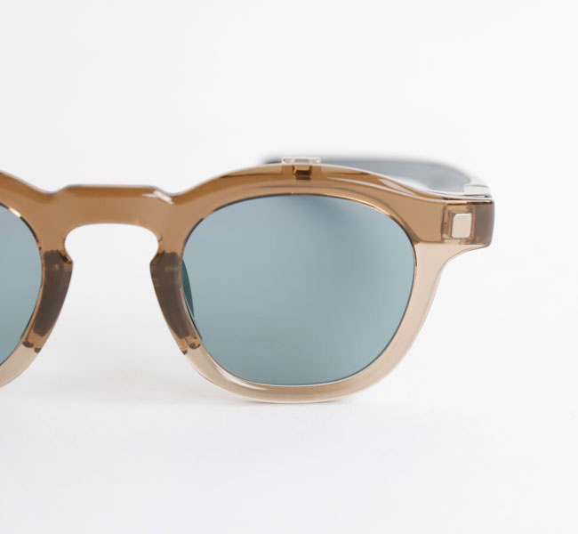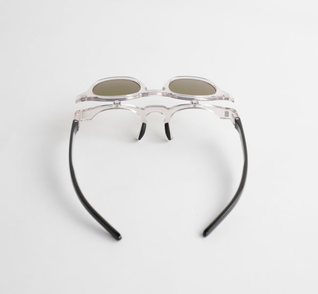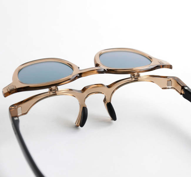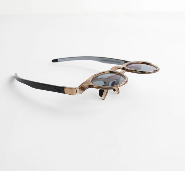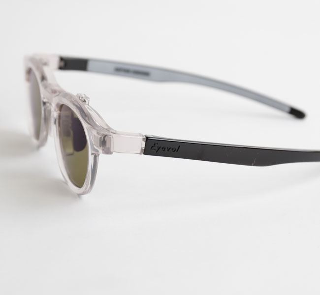 EYEVOLオリジナルのフレームを使用した、跳ね上げ式の偏光サングラス。
