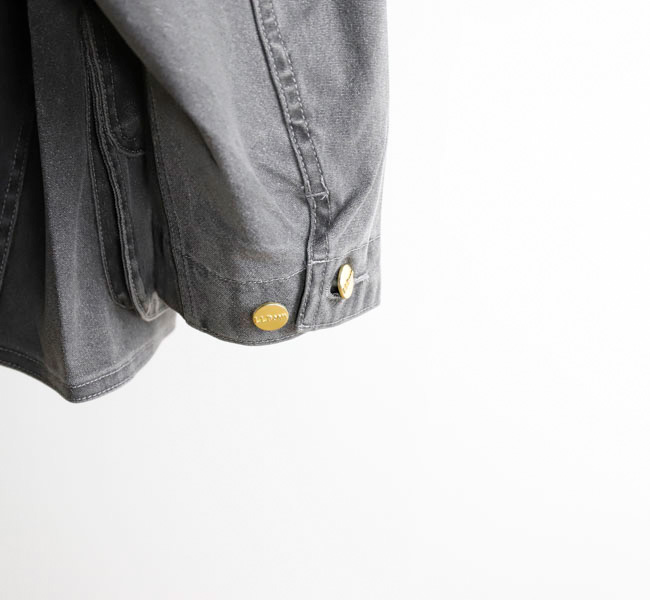 ※FW25より釦は、80-90年代のワークウェア等で見られる非常に立体的なブランドロゴが特徴的な合金のタックボタンを採用