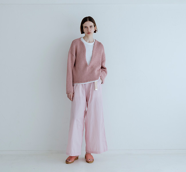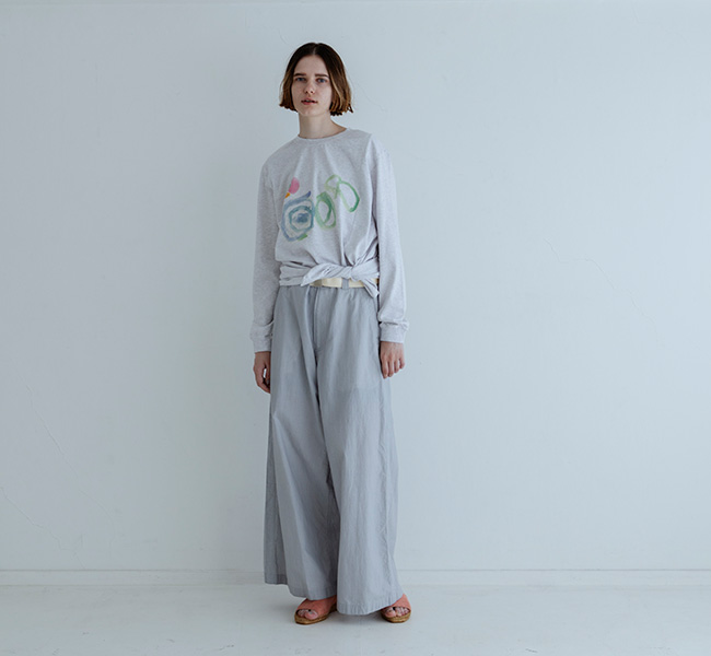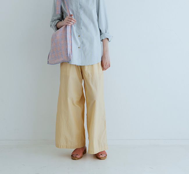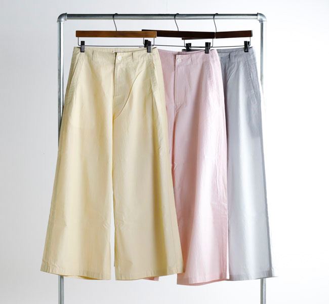 同じ形で SIDE LINE WIDE PANTS (FOWER) も。 お家で洗濯可能。