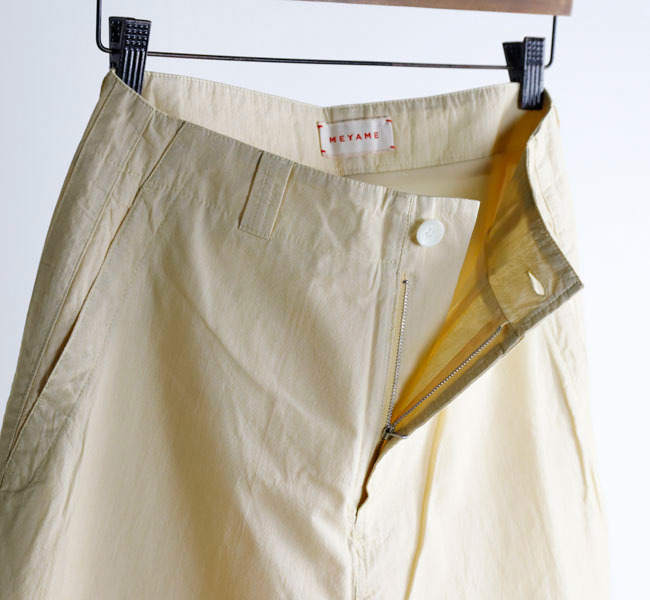 MEYAMEの毎シーズンの定番となった、思いっきりワイドなシルエットが特徴の SIDE LINE WIDE PNATS。この春はサラッとした肌触りが気持ちいいコットン素材で登場です。
