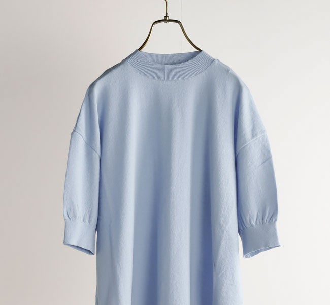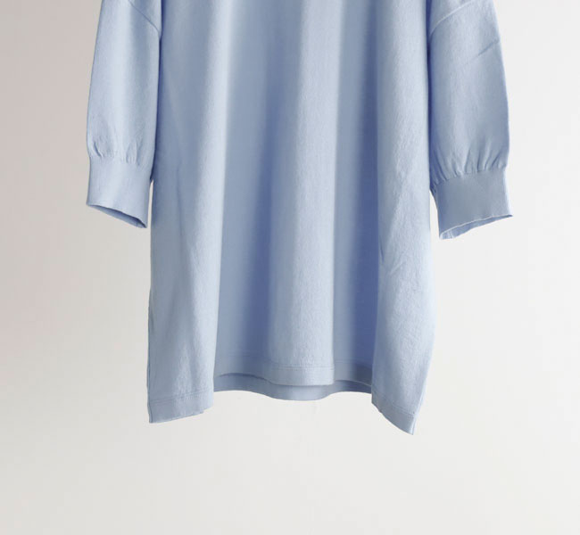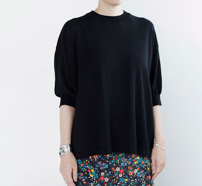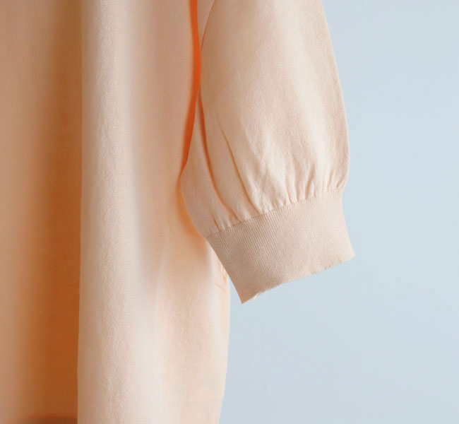Tシャツ感覚で着られるのにきちんとした雰囲気が出る理由は、やや高めのネックとやや長めの袖丈。長めの袖は腕を長く綺麗に見せてくれます。