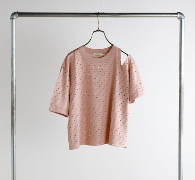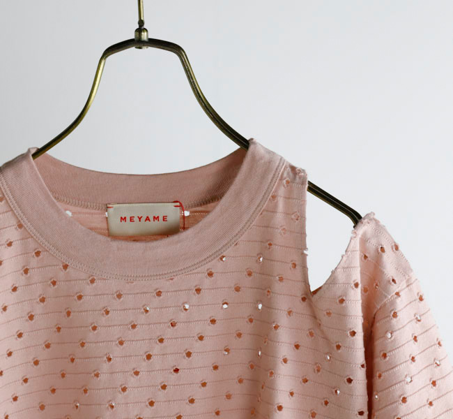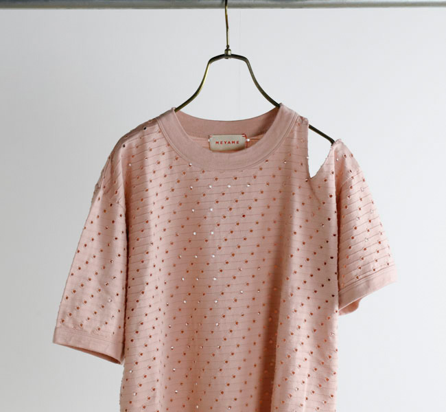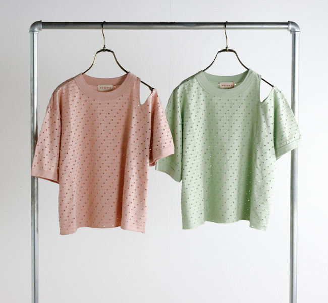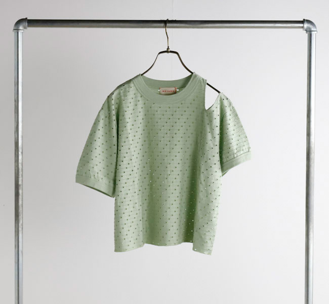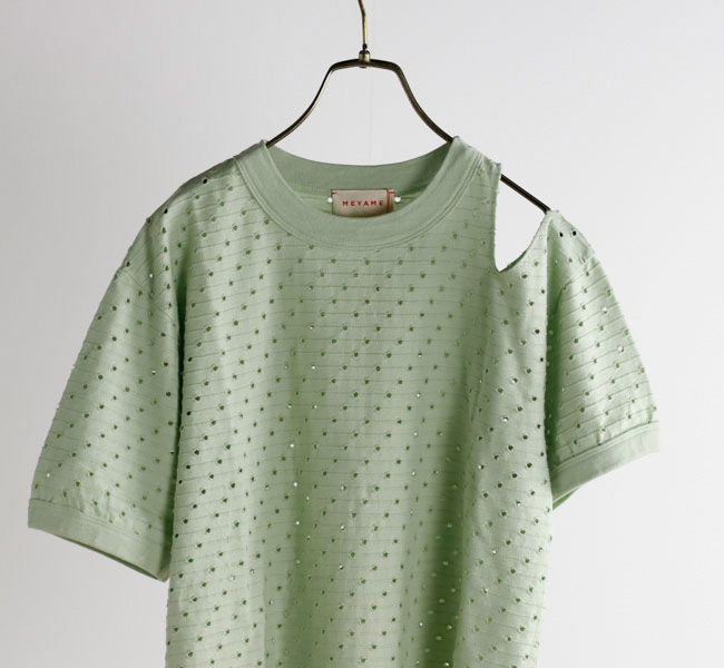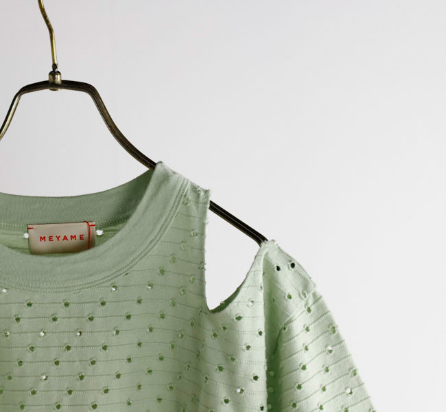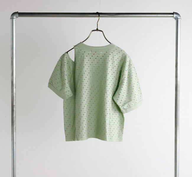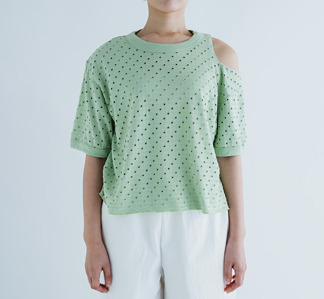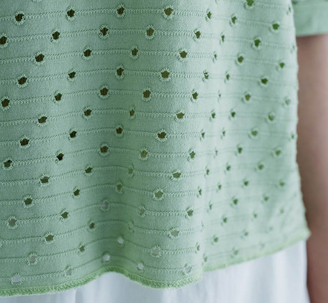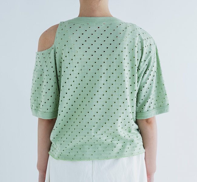 ドット柄に穴が空いている見た目にも涼しいDOT HOLE JACQUARD TEE。