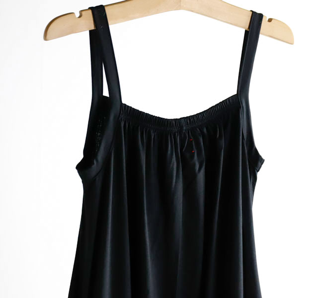 着丈を短くして、肩紐も短くしてより着やすいバランスを追求してあります。