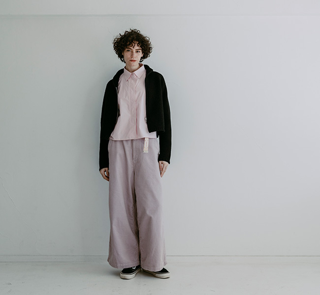 どんなトップスともバランスの取りやすいシルエットで、素材違いでお持ちになられる方が多いパンツです。