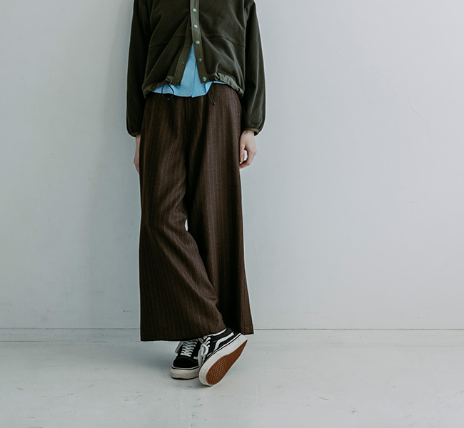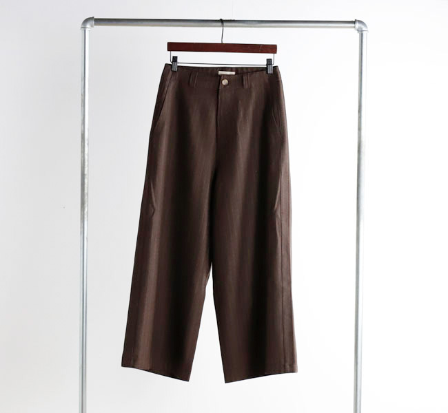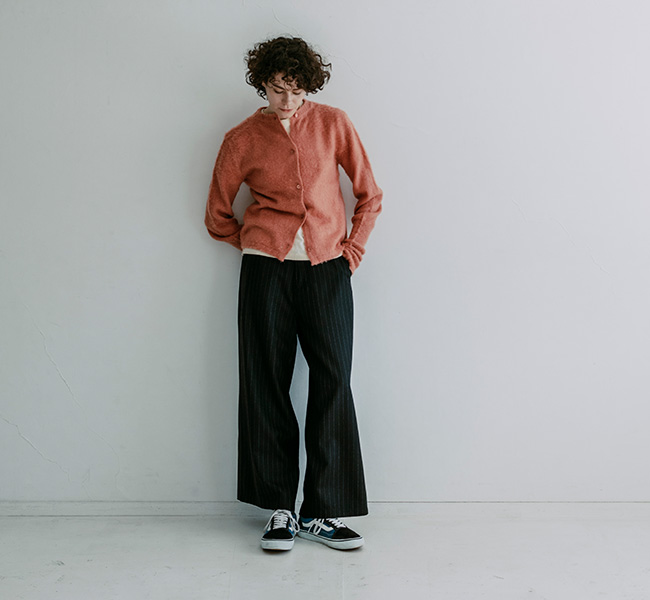 どんなトップスともバランスの取りやすいシルエットで、素材違いでお持ちになられる方が多いパンツです。