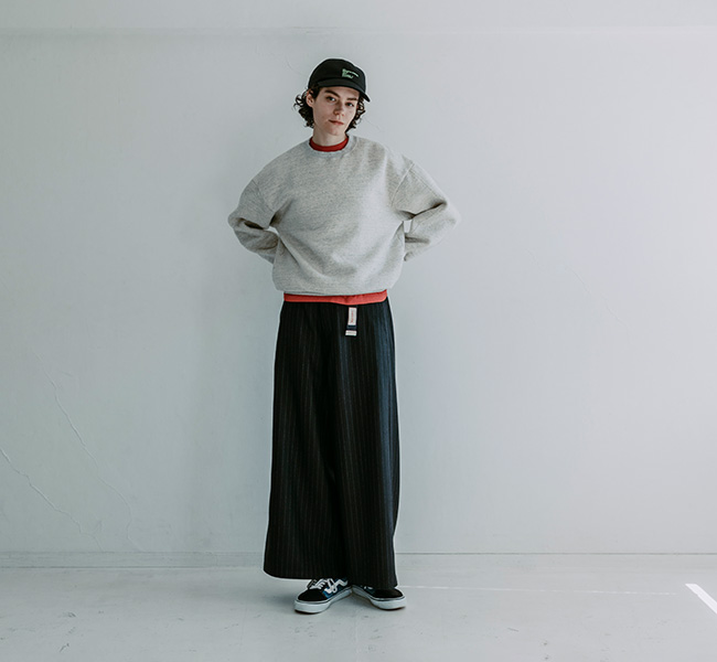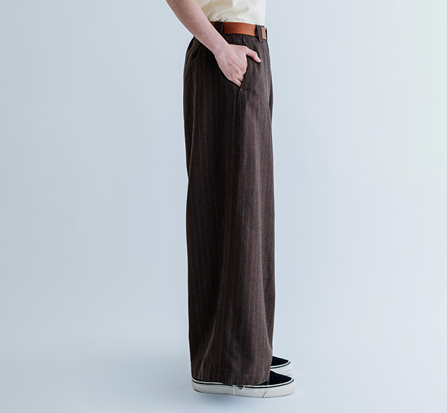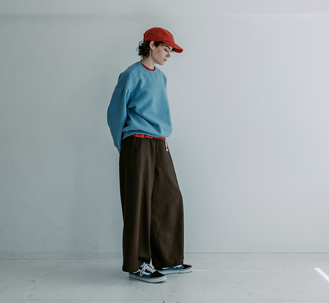 思いっきりワイドなシルエットが特徴の MEYAME の定番、SIDE LINE WIDE PNATS。
