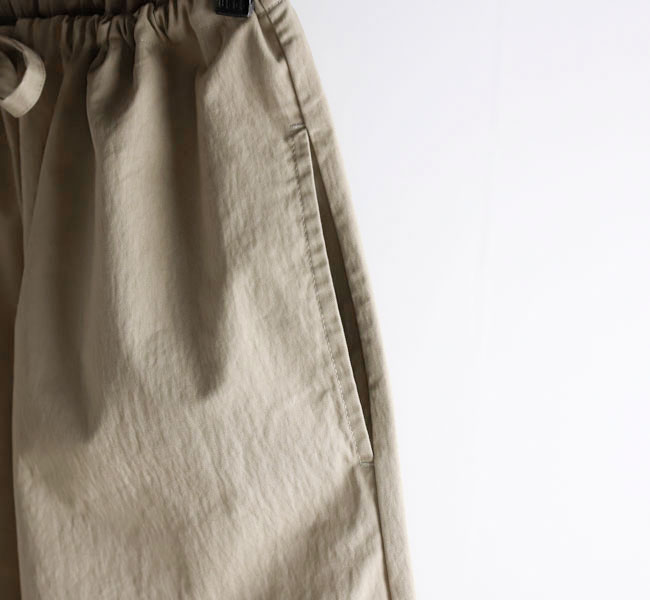 肌触りの良い生地は、コットンの柔らかな風合いとナイロンのハリとコシを合わせ持ち、シワも気になりません。表面に微起毛の加工を施し、無地の中にも豊かな表情があります。