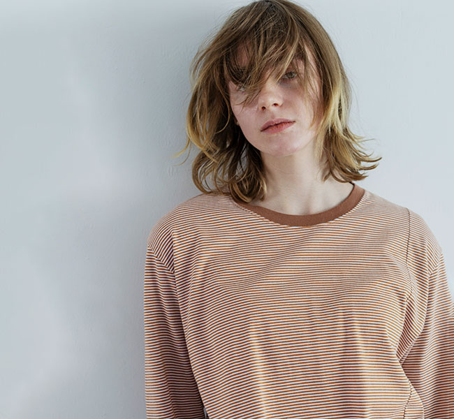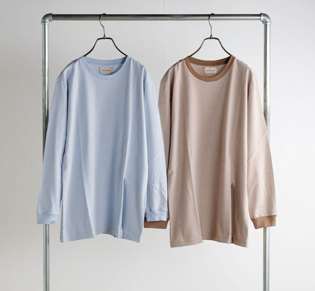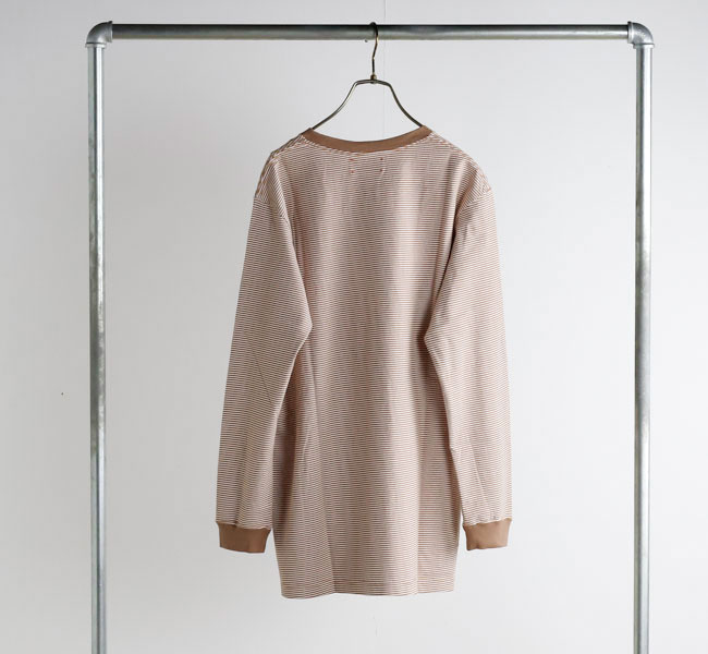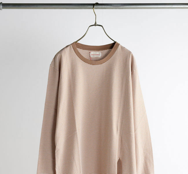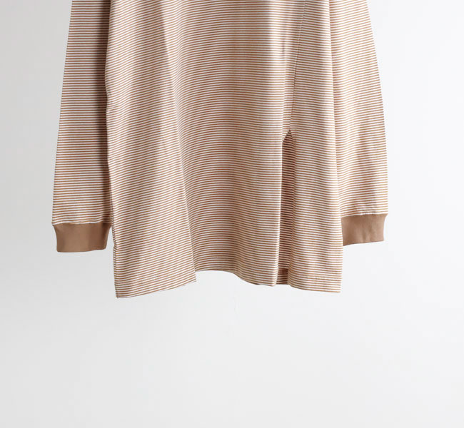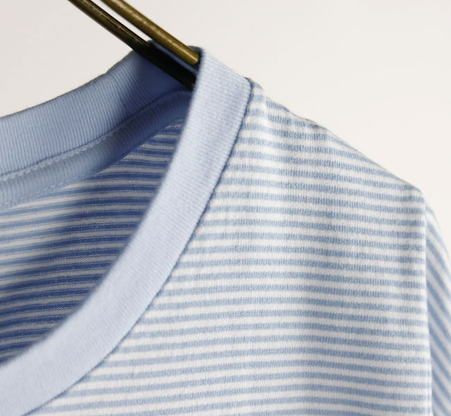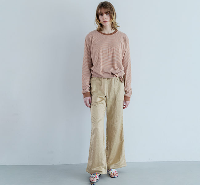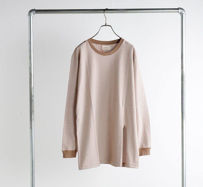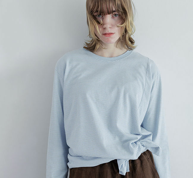 ややゆったりしたリラックスした雰囲気のシルエットを、ネックのリブで引き締めています。
